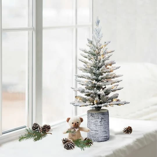 Deck the halls with the Puleo International 3 foot pre-lit potted flocked artic fir artificial christmas tree, inspired by lush wintery forests. The incorporated lights means no more climbing ladders to string lights, saving decorating time. When a single bulb burns out, the other lights on the strand will stay lit for your convenience. With easy to assemble pieces and an included base, your house will be ready for the holidays faster than you can say “Rockin’ Around the Christmas Tree”.