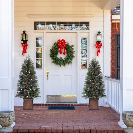 Let your mood decide your light choice with this color changing prelit potted holiday tree. Decorated with 150 mini LED lights that have three light functions and a waterproof control box. The 4.5 ft. tall Brookdale Christmas tree has a lush mixture of leaves and is decorated with real pinecones. Set atop a woodtone resin pot ready to place anywhere inside or under cover outside. This tree is perfect for flanking a fireplace or front door, or also works great as a small secondary tree in a family room or bedroom.