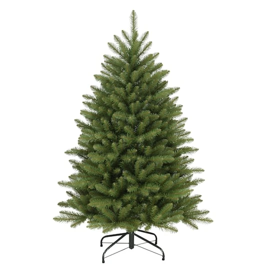 Bring the holiday spirit into your home with this 4.5′ Fraser Fir Artificial Christmas Tree. With life-like pine needles on its hinged green branches, this artificial tree is sure to add warmth to any room or space for years to come. The unlit tree’s included sturdy metal base will safely and steadily support your tree and decorations. Constructed from flame-retardant and non-allergenic materials, this tree provides a safer alternative to real trees.