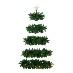 Looking for the perfect space-saving solution for the holidays? Meet this new wall-hanging Christmas tree, designed for those hard-to-decorate areas. Think of it as a lighted garland Christmas tree with everything you need for a festive celebration. Pre-lit with energy-efficient LED lights, this battery-operated tree fits seamlessly into any room, regardless of size. Standing five feet tall from top to bottom, it invites creativity – add ornaments, letters, trinkets and other accents to make it truly yours. Display in a studio, cozy nook, apartment, dorm and other spaces.
