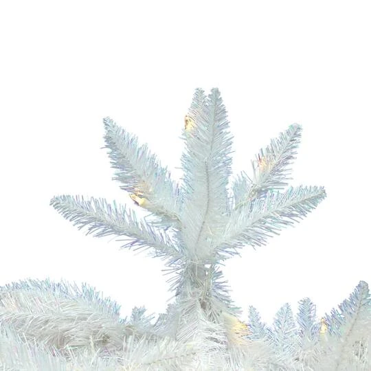 A wonderful alternative to the traditional green Christmas tree, this brilliant tree comes pre-lit with Warm White LED Italian Mini Lights, has white PVC tips on metal hinged branches, an On/Off Step Switch, and a metal tree stand is included.