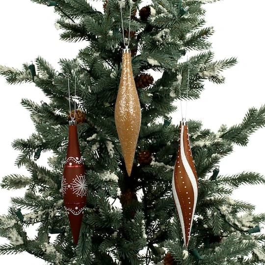 This set of teardrop-shaped ornaments features three different designs. Each ornament is embellished with glitter designs that will add sparkle to your home décor during the holidays. These shatterproof ornaments will make a great addition to your Christmas tree, garland, or wreath.