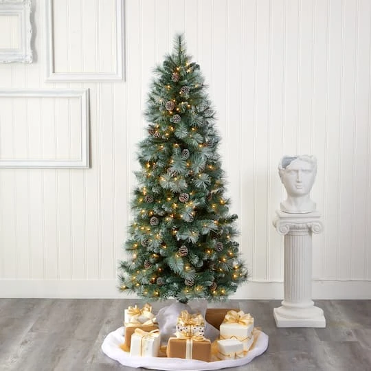 Showcase your own take on holiday décor with the help of this artificial Christmas tree. Easy to set-up and entirely maintenance free, this realistic looking artificial Christmas tree boasts a tall and slim silhouette of seasonal evergreens, made up of easy-to-bend branch tips for displaying all your favorite decorative ornaments and accents. Arriving pre-strung with clear LED lights to eliminate unsightly tangles and carefully stabilized on a metal stand, this 6ft. tall artificial Christmas tree will undoubtedly be the focal point of your holiday décor for years to come.