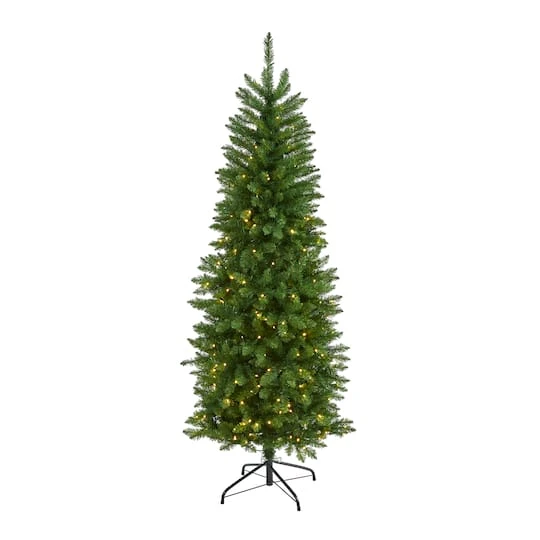 Incorporate seasonal evergreens into your decor scheme this holiday – even in the tightest spaces! – with the help of this artificial Christmas tree. Entirely maintenance free, it features a slim, tight silhouette made up of mountain pine greenery with 743 easy-to-bend branches for showcasing all your holiday ornaments and arrives pre-strung with 250 clear LED lights to help eliminate the hassle of tangles or knots. Guaranteed to make holiday decorating stress-free, this slim-fitting artificial Christmas tree stands tall and proud at 6’, stabilized on a metal stand for effortless display all season long.