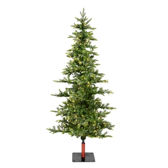 This artificial Christmas tree is sure to bring cheer to your holiday season. It is made with beautiful green PVC tips on hinged branches and comes with a metal tree stand.