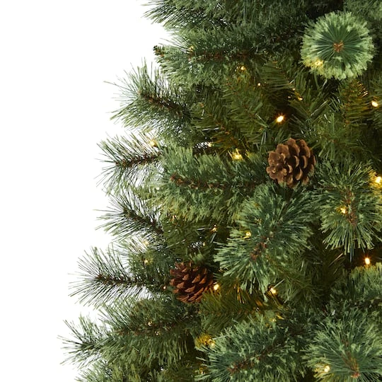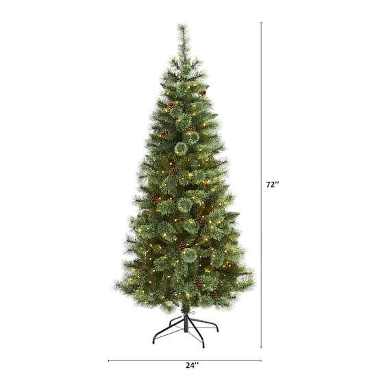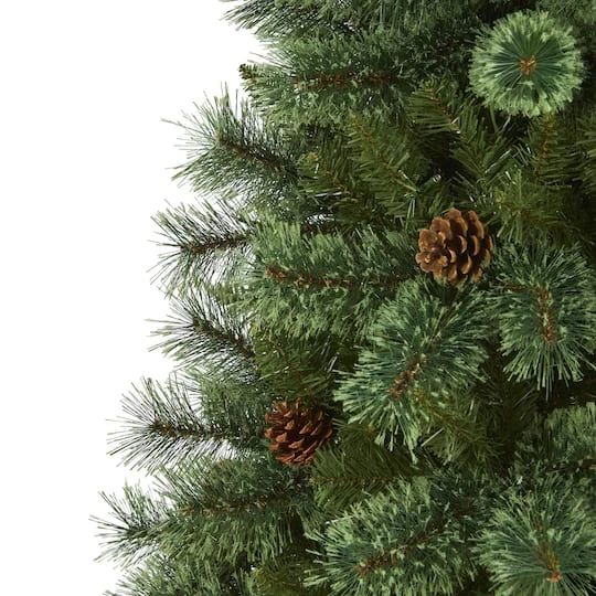 Create the ultimate holiday scene in your home or office with the help of this evergreen artificial Christmas tree. Entirely maintenance-free, this realistic looking fake tree boasts a rich collection of pine foliage, and handsomely accented throughout with faux pinecones that look incredibly lifelike. Arriving pre-strung with lights to eliminate tangles and stabilized on a metal stand, this 6 foot tall Christmas tree will not only make holiday decorating a breeze but ensure your home is always holiday-dressed for years to come.