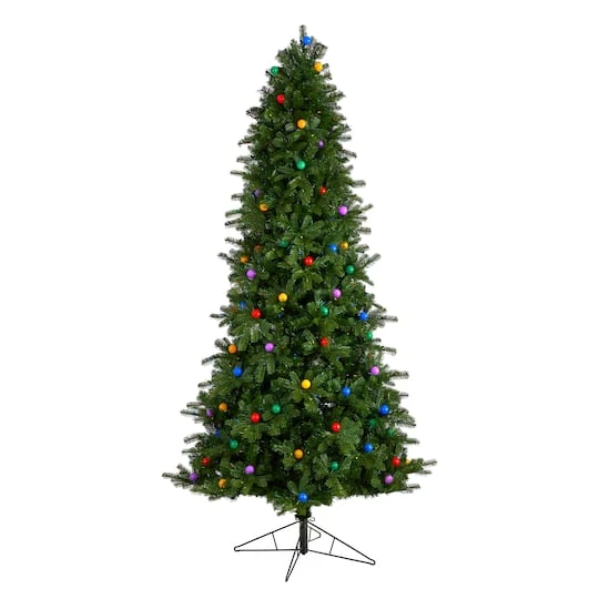 Light up your home this holiday season with the help of this artificial Christmas tree. Easy to build and entirely maintenance-free, it boasts a traditional silhouette of seasonal evergreens, made up of 1762 easy-to-bend branches, perfect for showcasing all your favorite holiday ornaments. Arriving pre-strung with 800 multicolored LED lights, 100 globe lights and carefully stabilized on a metal stand, this festive 8.5 ft. tall artificial Christmas tree will undoubtedly be a focal point throughout the holidays, year after year. Faux Christmas Trees are manufactured using synthetic materials, such as polyester material or plastic, and are well designed and constructed to be life-like in appearance. This item will need to be re-shaped when removed from the secure box to allow it to reach its fullest size. Your artificial Christmas Tree will look beautiful for years to come; simply wipe clean with a soft dry cloth when needed.