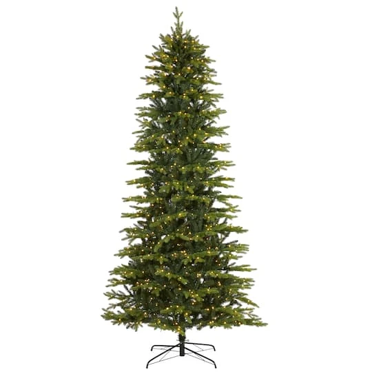 Create a traditional Christmas scene in your home or office with the help of this easy and effortless artificial Christmas tree! Completely maintenance-free, this realistic looking fake Christmas tree boasts multiple tiers of natural looking fir foliage made up of easy-to-bend branches, perfect for showcasing your favorite holiday ornaments. Arriving pre-strung with clear LED lights to eliminate tangles and carefully stabilized on a metal stand, this impressive 9ft. tall artificial Christmas tree will not only make decorating a breeze but ensure your home is always seasonally attired for years to come.