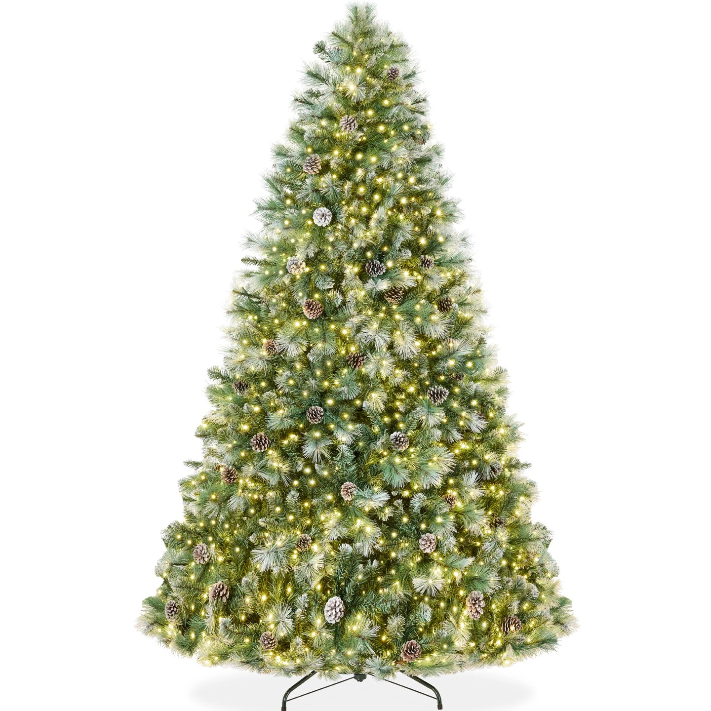 FROSTED SCOTCH PINE: Quality pine needles & PVC come together to recreate the dense, crown-like foliage of the iconic scotch pine-complete with frosted tips for a stunning centerpiece that celebrates the holiday seasonPREMIUM DESIGN: Durable, frosted branches come pre-decorated with natural pine cones to recreate a natural look that brings an outdoor aesthetic into your decorative spaceEASY ASSEMBLY & CORDLESS CONNECTION: This trees features a cordless light system-stack the sections of the tree, fluff, and plug in the base! Fluff Time (4.5ft/6ft/7.5ft/9ft/12ft): Approximately 15-30 min/ 30-45 min / 45-60 min / 1-1.5 hrs/ 1.5-2 hrsFULL APPEARANCE: Hundreds of tips create an even and full appearance with plenty of space for your best ornaments, garland, tinsel or DIY decor; number of tips (4.5ft/6ft/7.5ft/9ft/12ft): 396/ 946 / 1,320 / 2,020/ 3,6309 LIGHT FUNCTIONS: Use the foot switch to cycle between 9 light sequences as hundreds of 2-in-1 warm white and multicolored LED lights come to life and add a dynamic touch to the holidays; light counts