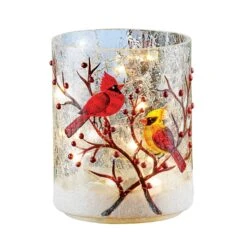 Collections Etc Hand Painted LED Lighted Cardinals Glass Tabletop Hurricane