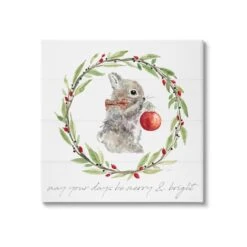 Stupell Industries Merry & Bright Bunny Wreath Canvas Wall Art