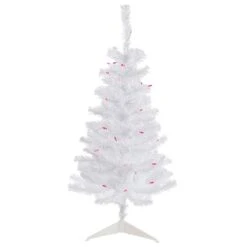 Northlight 3ft. Pre-Lit White Iridescent Pine Artificial Christmas Tree, Pink Lights
