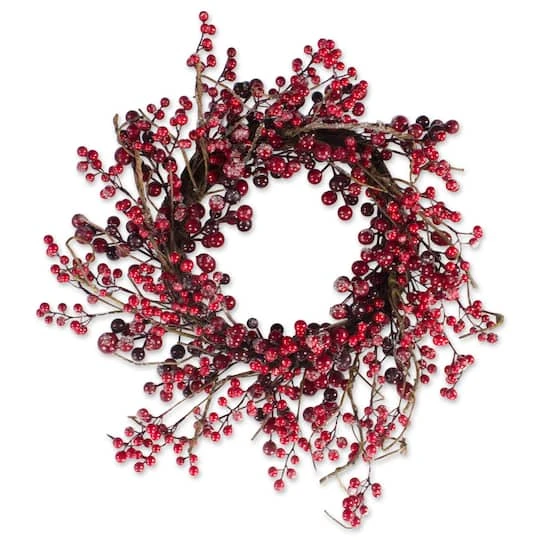 Wreath decorated with brown twigs with berries, frosted with crystalline to add wintery feel. Lightly dust when needed. Shaping is required to achieve a full and lifelike look upon delivery. Add holiday charm to any wall in your home with an with a seasonal wreath. Brings enjoyment to decorations and can be used for parties, indoor activities, and all kinds of festive decorations.