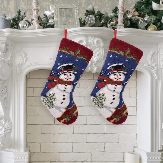 Decorate for the holidays with these snowman stockings. Hang them on your fireplace mantel for a pretty and elegant touch to your Christmas décor.