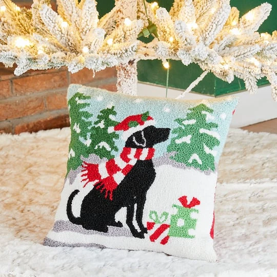 To celebrate and decorate with holiday with this hand made pillow. It features a winter scenario with a dog in red hat, unique and cute for your holiday home and furry friends. The front side is made out of acrylic, soft but durable. You can put it on your sofa, bed for daily use or as festival decorative piece. Cozy feel, super soft and flexible texture.