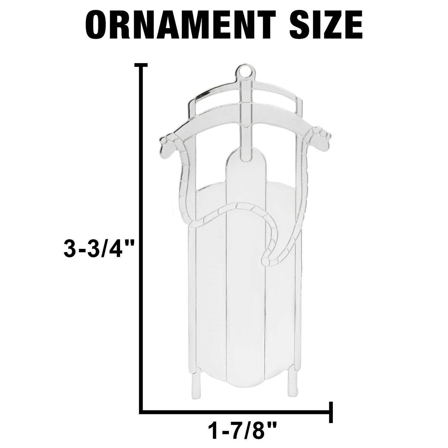 This adorable silvertone metal sled ornament brings back childhood memories of school closing due to “snow day”. How we loved to hear our school was giving us a “snow day” so we could run outside to go sledding with our friends. Not only is this ornament a delightful addition to your holiday decorations, but it also makes a thoughtful and unique gift for a friend or loved one. The ornament comes with a cord, making it easy to hang on your tree or display on a mantle. Gift box included, made in USA.