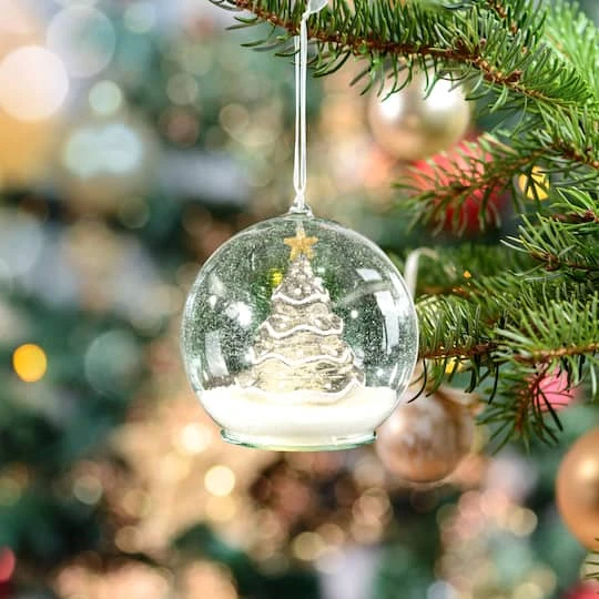 This exquisite ornament is a captivating addition to your festive décor, boasting intricate details and enchanting lighting effects that will illuminate your surroundings with warmth and elegance. The gold shimmering tree encased within the globe adds a touch of nature’s tranquility, casting a radiant glow that beckons the joyous spirit of the holidays into your home. What sets this ornament apart is its versatility in lighting options. Choose between the steady glow that exudes a sense of serenity or the dynamic color-morphing effects for a more playful charm. With 2 warm white LED lights and 2 color morphing LED lights, you have the power to create an enchanting atmosphere that suits every mood and occasion.
