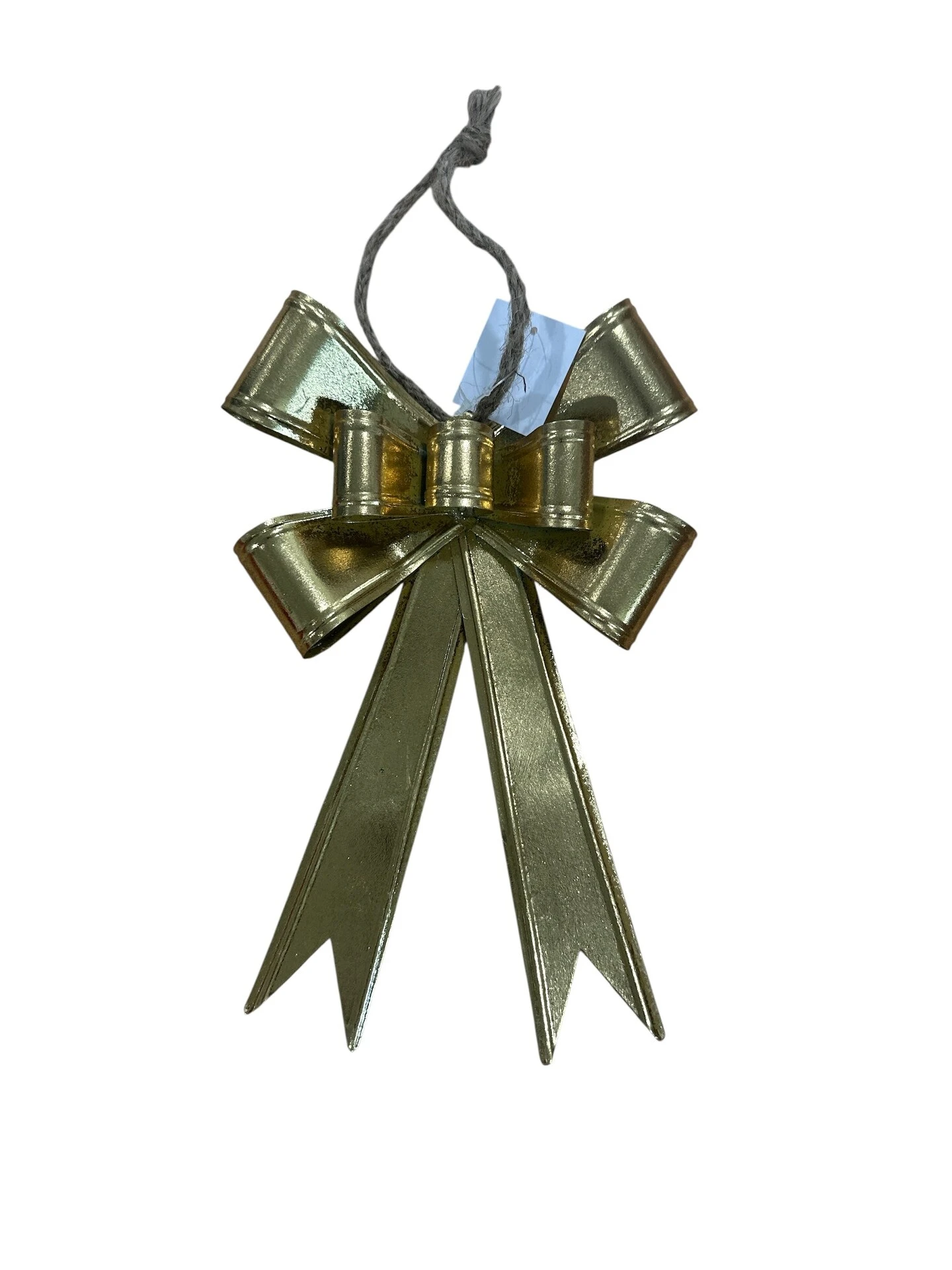 Bring timeless elegance to your holiday decor with this gold metal bow ornament. Measuring 10″ L x 6.5″ W x 1.25″ D, this festive accent is perfect for Christmas trees, wreaths, garlands, or mantel displays. Crafted from durable metal with a shiny gold finish, it adds a luxurious touch to both traditional and modern holiday themes.