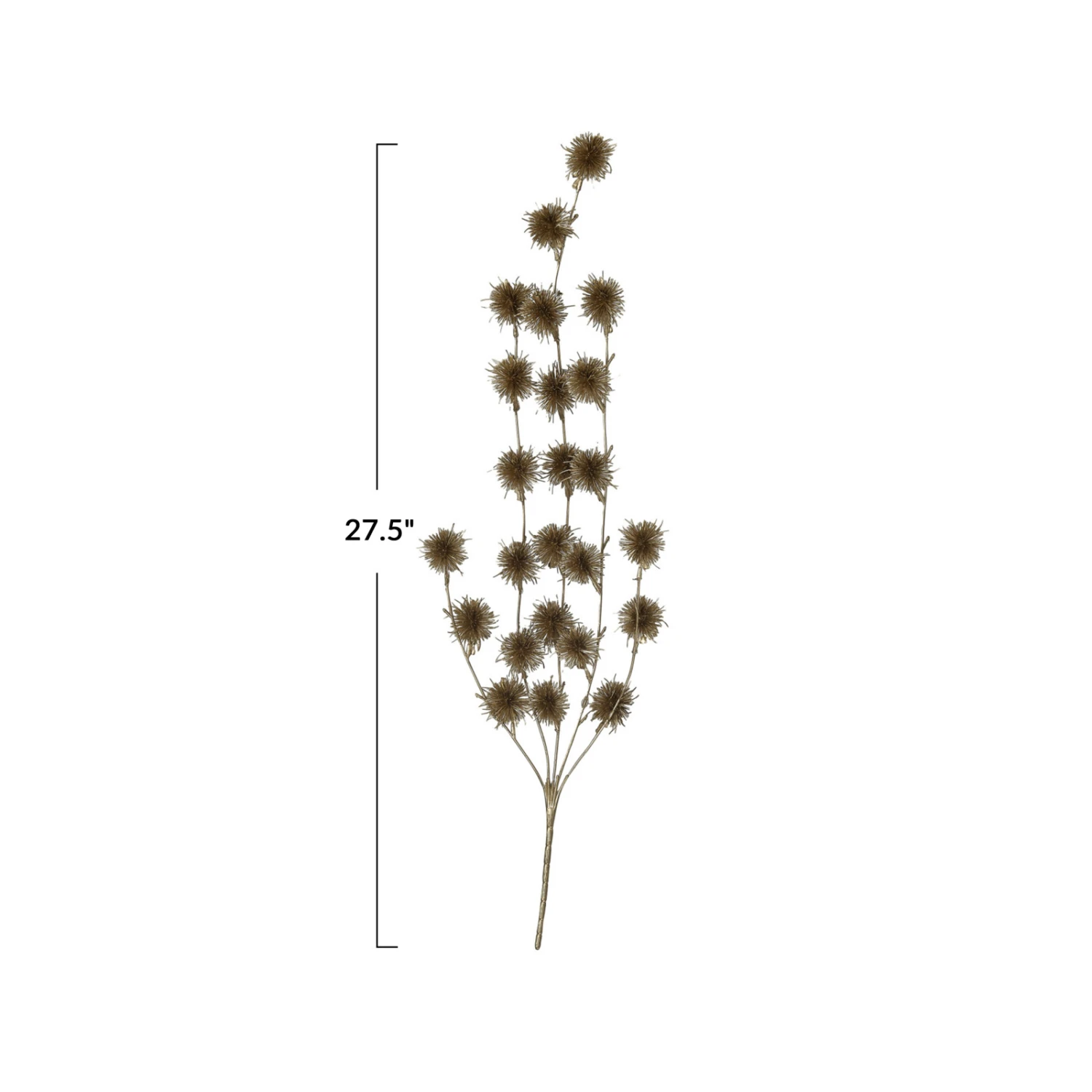 This faux flower pick pod spray is a stunning and realistic piece that will enhance any space. The spray features a gold color that will create a stunning and enchanting atmosphere.