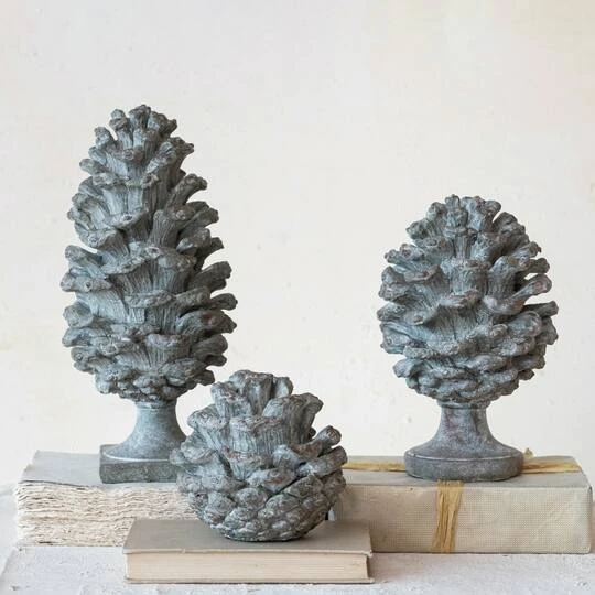 This verdigris resin pinecone finial is a lovely and unique way to decorate for the holidays. The pinecone finial has a natural and elegant look that can suit any festive theme, from traditional to modern. This décor piece is ideal for displaying on a table, mantel, shelf or window sill, where it can add a touch of warmth and charm to the space.