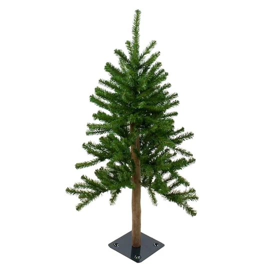 This wonderful Alpine tree is the true meaning of woodsy. It is the perfect replica and features a realistic wood trunk with thick and full tips. It is ideal for entryways next to a hearth or as a rustic Christmas tree.