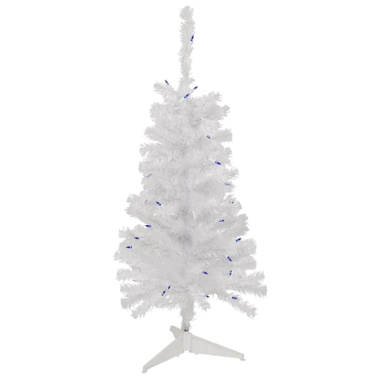 Transform your space into a winter wonderland with the beautiful Woodbury White Pine tree. It is a designer-inspired alternative to a traditional green tree with its dazzling white pine needles sure to reflect the light from the vibrant blue mini lights that it comes adorned with. The lush needles give the tree fullness but the slim profile makes it ideal for small spaces and allows it to fit perfectly in corners or on tabletops.