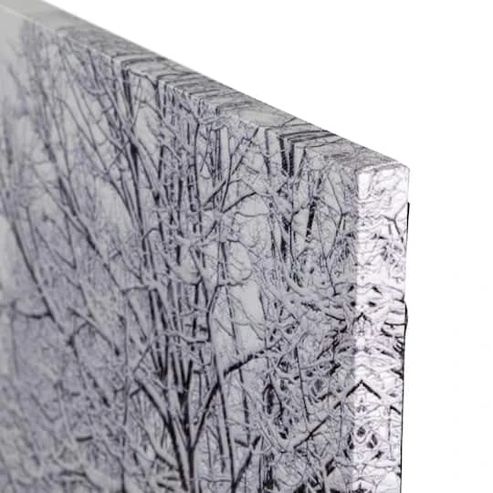 Add a modern touch to your Christmas wall décor. Wintry scene features a snow covered road lined with snow covered trees.