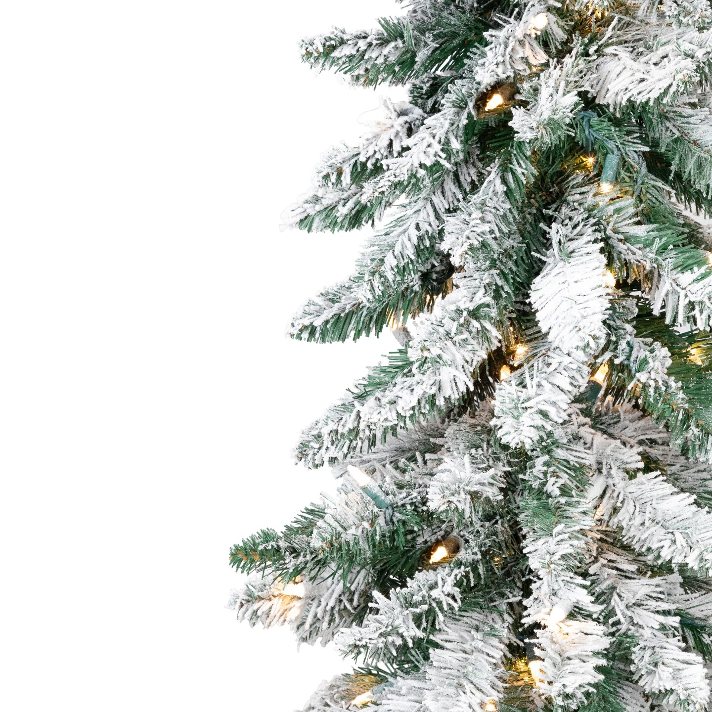 This 5′ flocked pencil Alpine artificial Christmas tree brings a touch of winter charm to your holiday decor. With its slim profile, it’s perfect for smaller spaces while still making a bold statement. Pre-lit with 150 clear lights, it creates a warm, inviting glow that highlights the snow-dusted branches for a natural, wintry effect. A hassle-free addition to your holiday setup, this tree offers both beauty and convenience with its realistic design and easy setup.