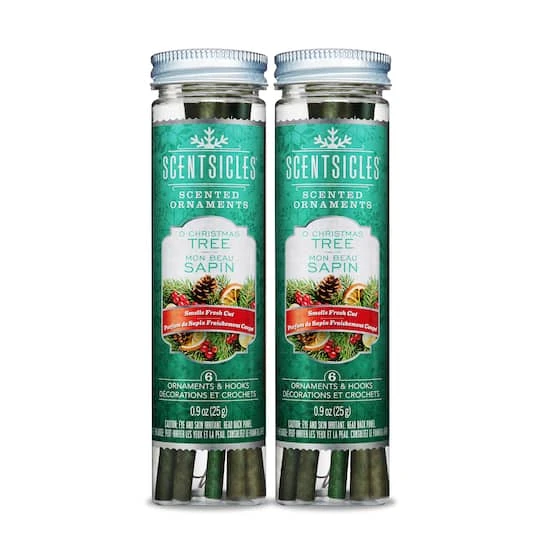 O Christmas Tree features notes of Balsam fir tree mingled with the aroma of juniper berries, fresh pine and warm cedar wood. Trickling through the air is the scent of a sweet, perfectly-ripened clementine, telling you that your favorite winter citrus has made its annual yuletide appearance. Made of sustainable, biodegradable, recyclable paper, these stick ornaments have been created to hide discreetly in your trees and artificial greenery. Enjoy the fresh-cut smell of Christmas for up to 30 days.