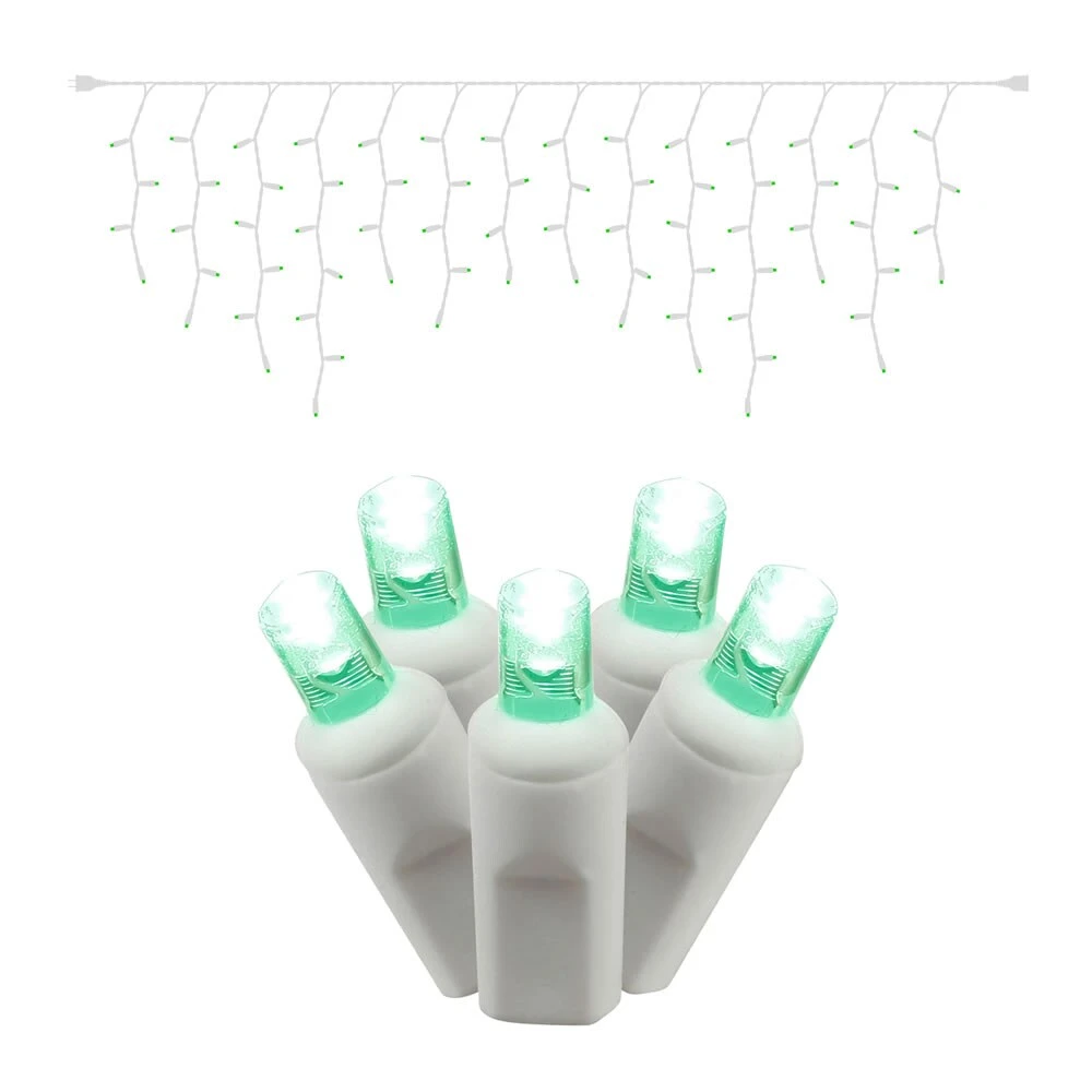 Vickerman 70 Green Wide Angle LED Icicle Light on White Wire, 9′ Christmas Light Strand